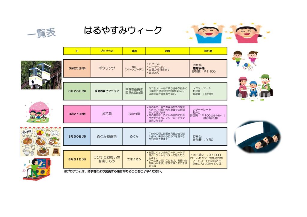 3月後半、春休み中の特別プログラムです。